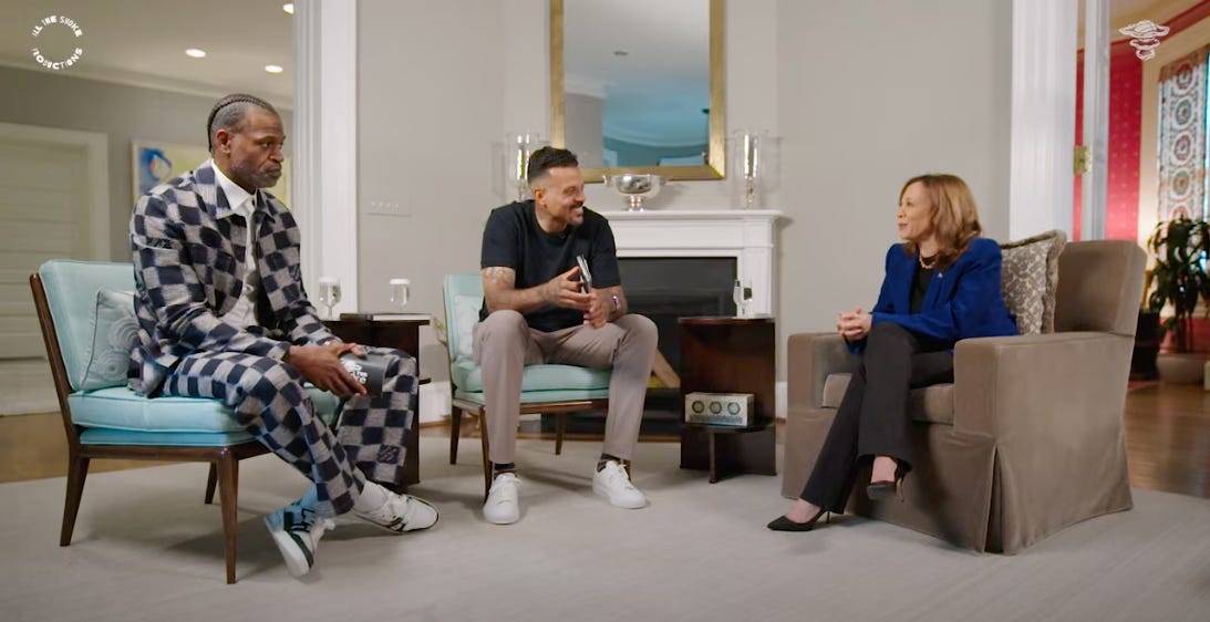 The other day, Kamala Harris went on a podcast. No, it wasn’t “I Protest,” hosted by Don Jeffries. It was “All the Smoke,” hosted by former NBA players Matt Barnes and Stephen Jackson. As embarrassing as Countess Cackula had been up to this point, going on this podcast crossed a new line. Call it nuclearized embarrassment.
